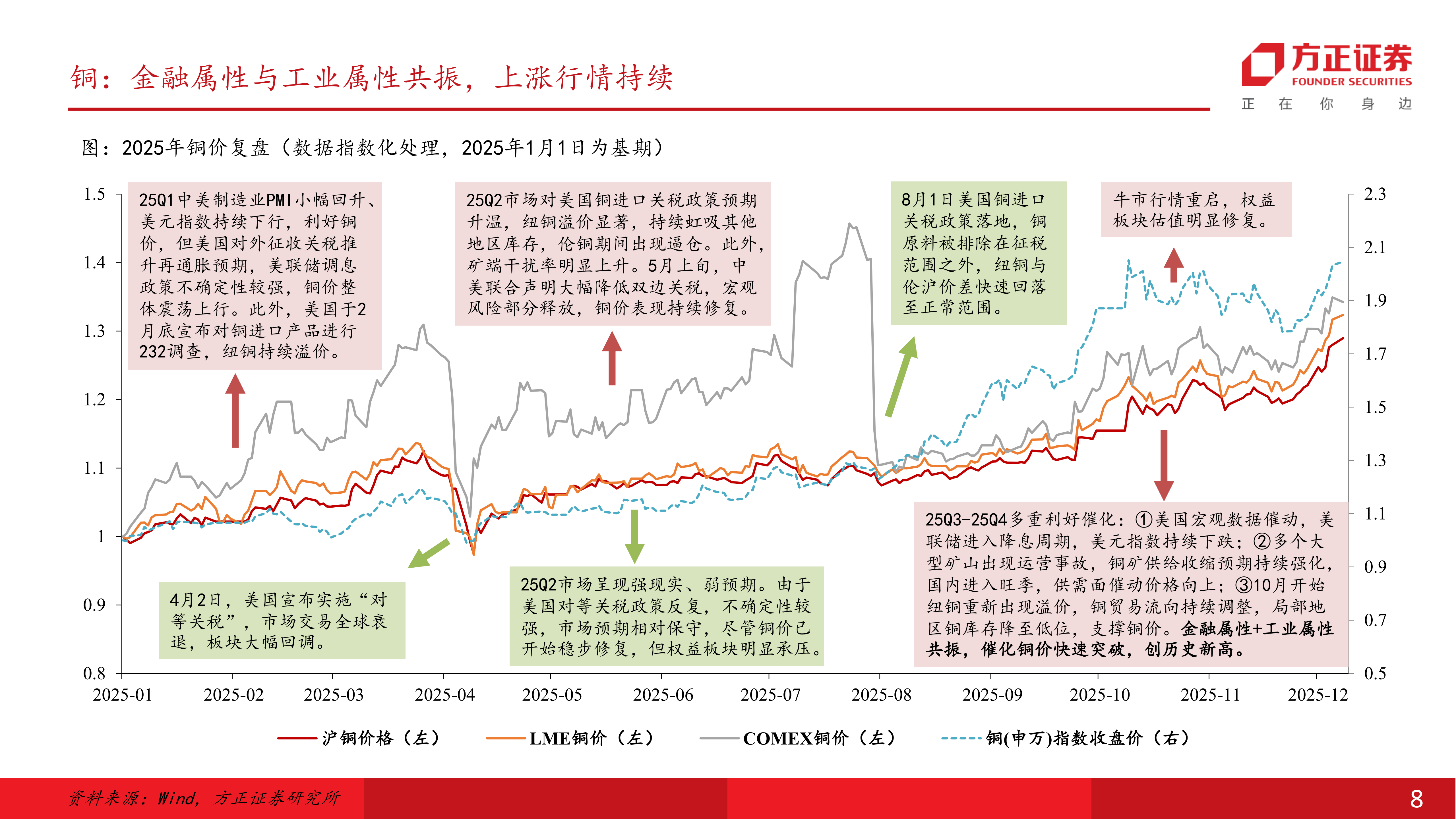 从今年表现看,COMEX黄金大涨71.84%,COMEX白银暴涨156.74%,COMEX铜涨超42%。业内人士指出,2025年金属板块的强势表现源于宏观金融政策与供需结构性变化形成利多共振,金融市场多头资金顺势助推,板块轮动效应下,各金属品种轮番上涨并扩大涨势。